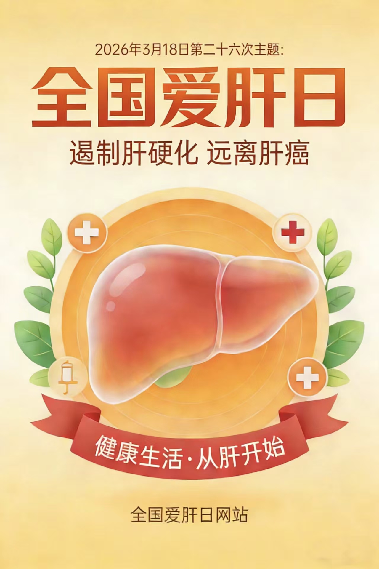 2026年3月18日是第26个“全国爱肝日”。今年的宣传主题和口号是:“遏制肝硬化,远离肝癌”,旨在提高全国人民爱肝护肝意识。